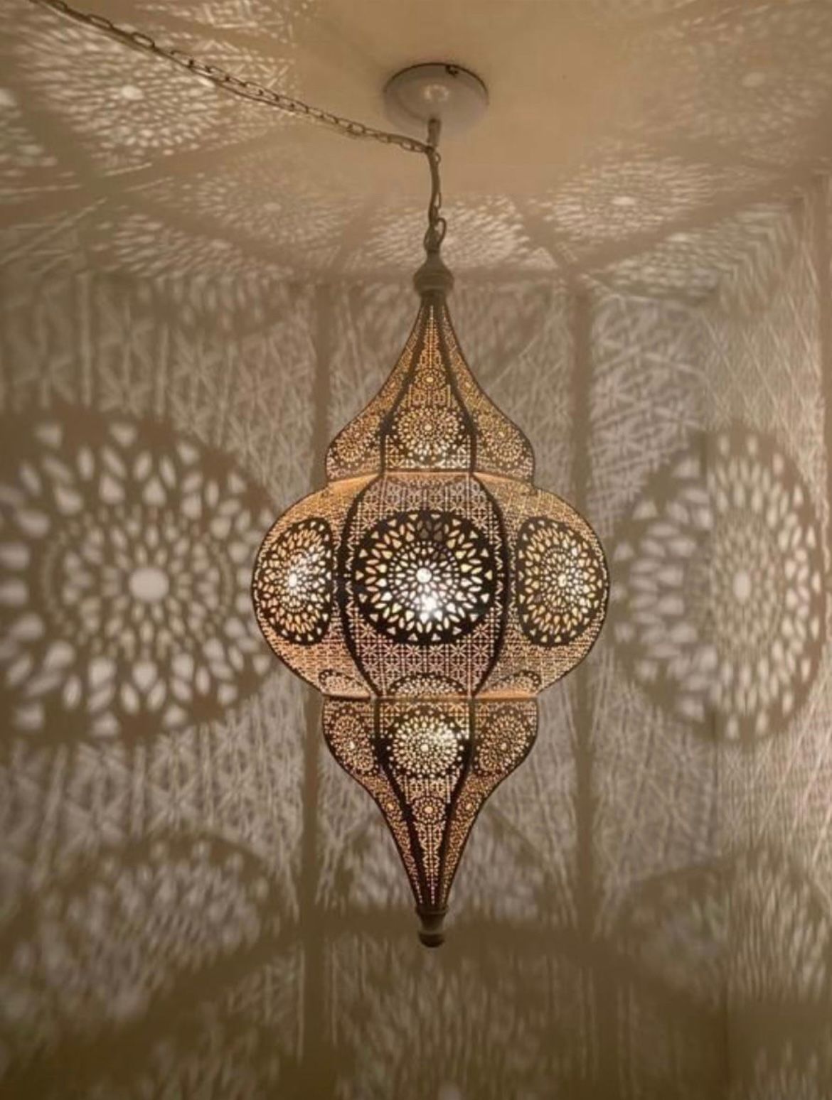 Handcrafted from solid brass, the Golden Star Pendant showcases an intricate star-inspired design that casts a dazzling interplay of light and shadow across walls and ceilings. Its refined silhouette makes it both a functional light source and a captivating decorative piece.